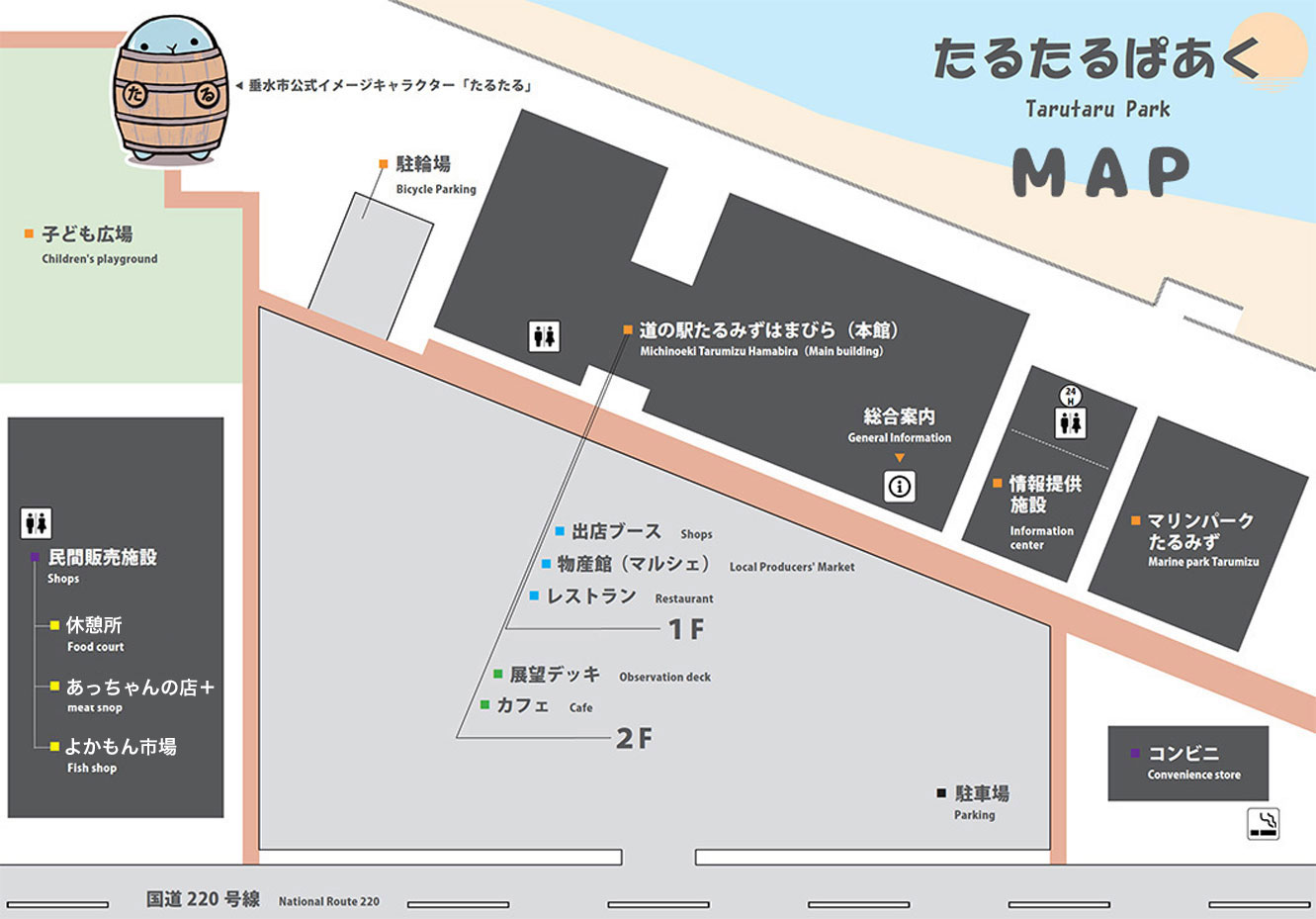 主な施設:道の駅(トイレ・情報施設)及び地域振興施設(マルシェ・レストラン棟)及び民間施設